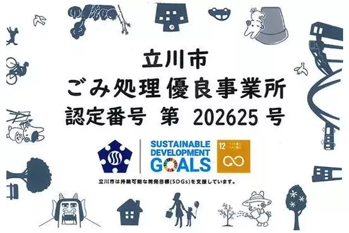 株式会社 加藤製作所(代表取締役社長:加藤 公康 以下、当社) の立川事業所では、このたび東京都立川市より「ごみ処理優良事業所」に2024年から継続して認定されました。