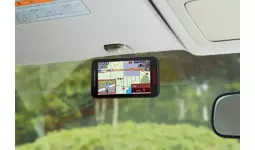 付属の宙吊りステーでフロントガラスと天井のすき間に取付け可能(YK-3200)