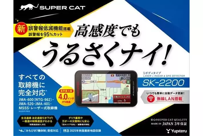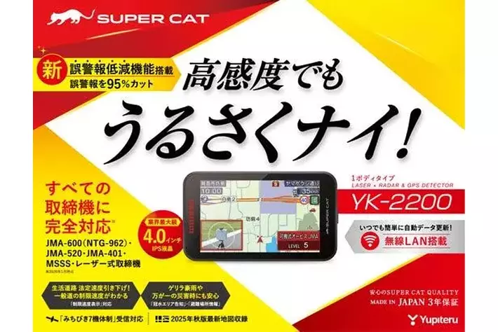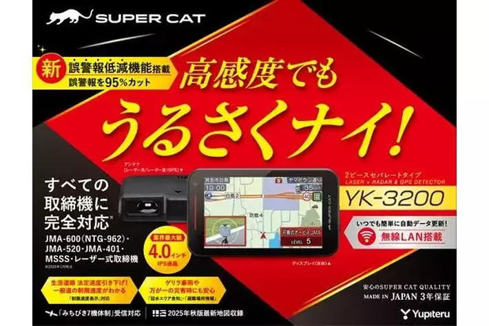 株式会社ユピテル(本社:東京都港区、代表取締役会長 兼CEO:安楽 憲彦、以下ユピテル)は、Kバンド識別性能の強化と、新誤警報低減機能の搭載により従来モデルと比較して誤警報を最大95%低減させた、レーザー&レーダー探知機「SUPER CAT」2026モデルを発売します。