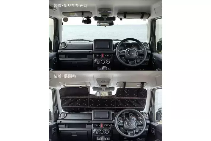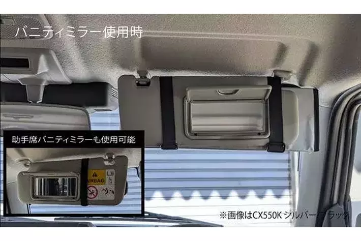 製品名:バイザー取付折りたたみサンシェード ジムニー用品番(カラー): CX550K(シルバー/ブラック) 、CX558K(カーキ/ブラック)