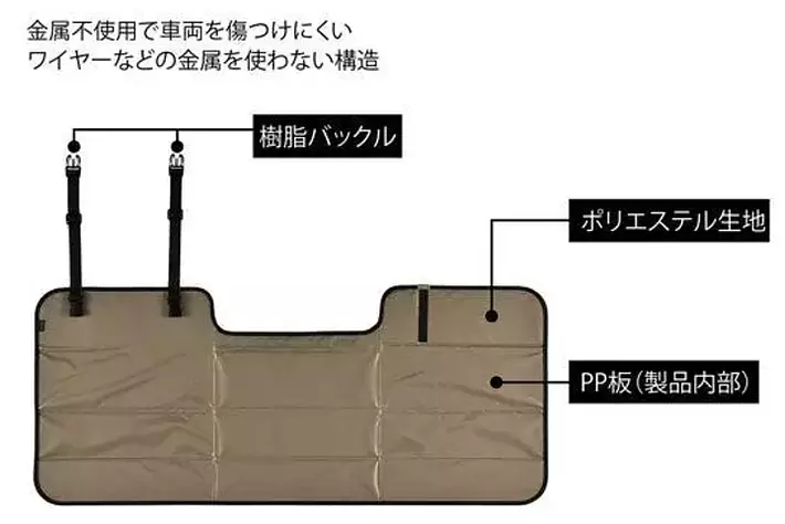 生地の内側にはPP板を採用し、折り目以外の部分で不意に曲がらない構造とすることで、誰でも迷わずキレイに畳める設計に仕上げました。また、バックル以外に樹脂パーツの露出がないため、ダッシュボードや内装を傷つける心配もありません。