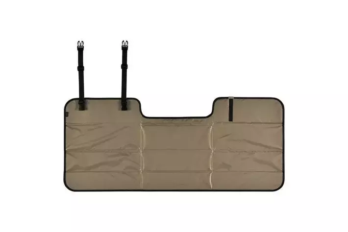車両内側がブラック、車両外側がシルバーとカーキの2色展開です。外からの見え方にこだわり、カーキはジムニーやアウトドアシーンに映える人気のカーキベージュを採用しました。ベルト部分はブラックを基調に、アクセントとしてベージュを配色。生地素材も、ジムニーに似合うものを選定しました。
