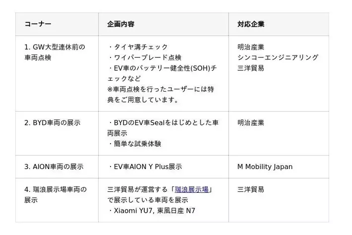 ~GW前の車両チェック、EV車両の展示などを4/25(土)・26(日)に実施~