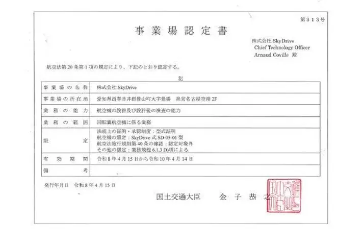 - 事業場名: 株式会社SkyDrive