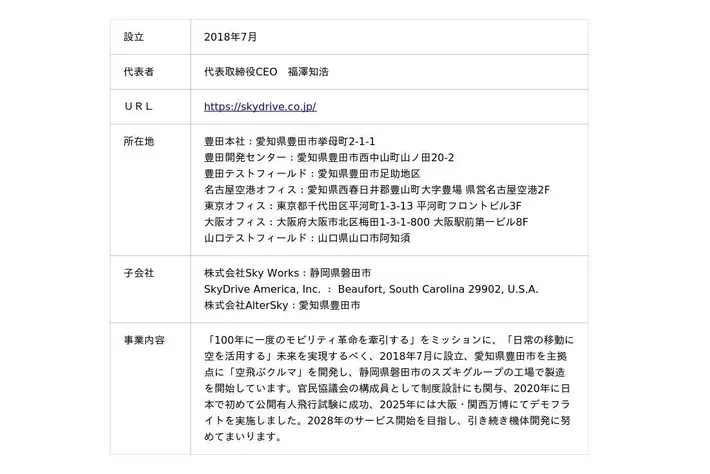 ≪株式会社SkyDrive 概要≫