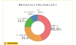 ・車の入手方法は一括購入が45.0%、ローン購入が31.5%、カーリースが13.7%