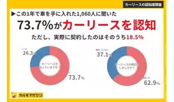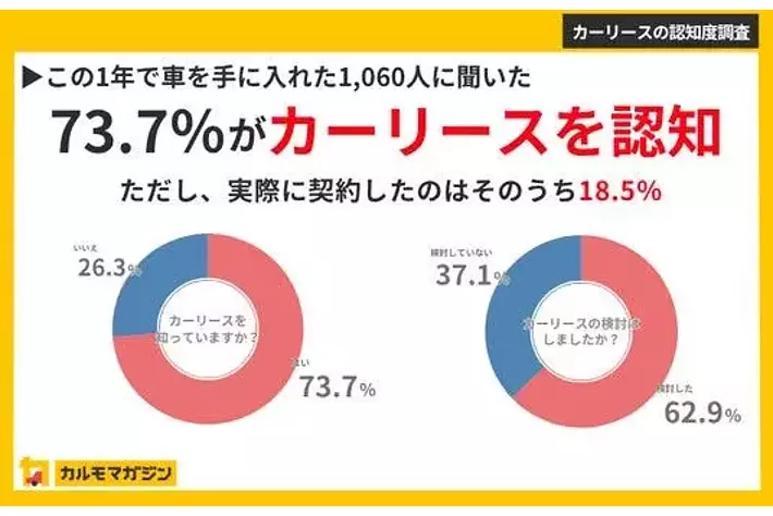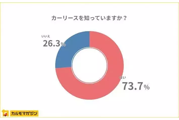 ・カーリースの認知率は73.7%で、車を手に入れた方の約4人に3人が知っている