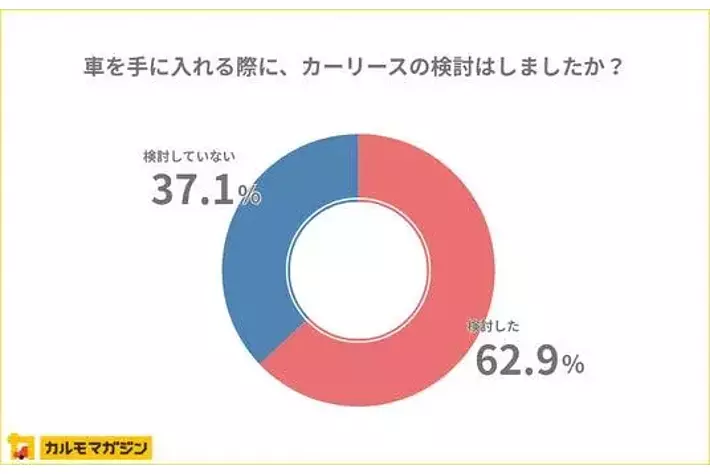 ・カーリース認知者のうち62.9%が検討経験あり、実際の契約率は18.6%