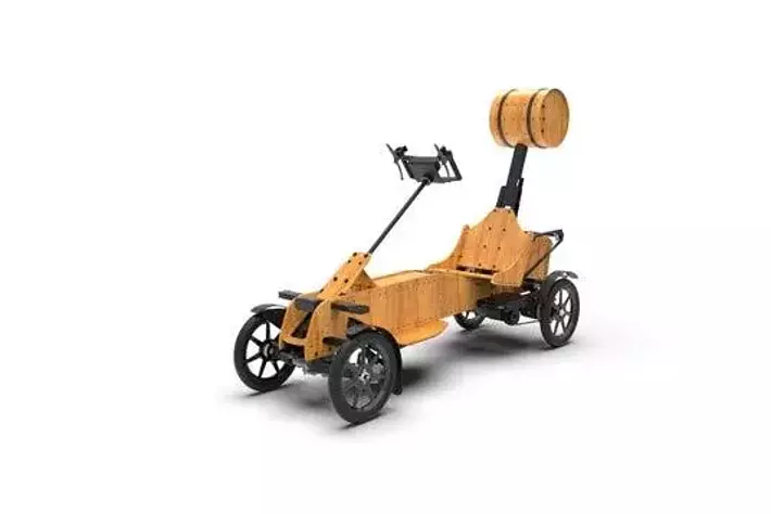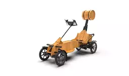 特定小型原動機付自転車区分となる木製カートです。16歳以上であれば自動車免許がなくても運転でき、最高20km/hでの走行が可能です。