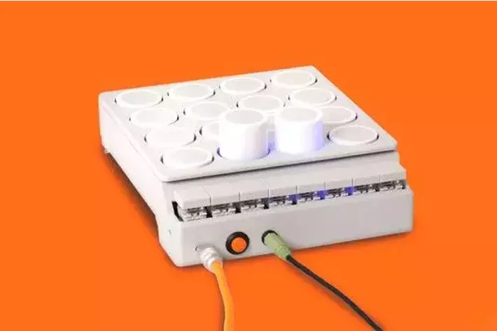 音に合わせてボタンが飛び出すことで、音を耳だけでなく目で見て手で触れられる楽器ロボットです。アプリと接続することでAIとの協奏を行うインターフェイスとしても機能します。