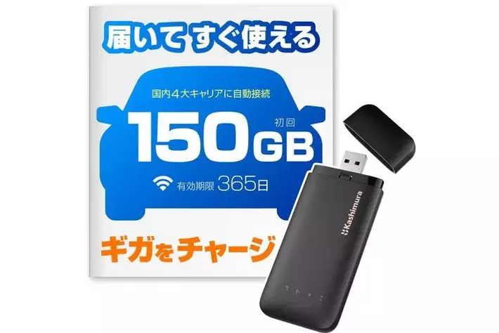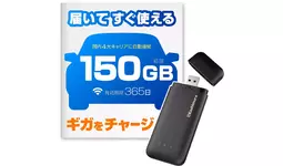 - 買い切りタイプなので月額費用なし。150GBの通信量を使い切ったら、1GBからチャージ可能