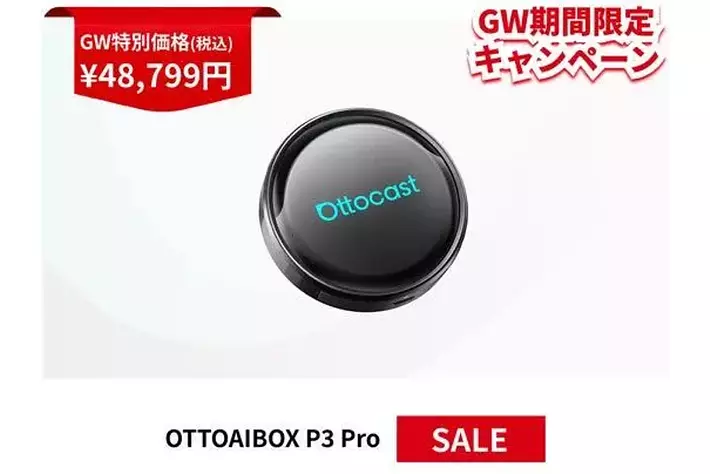 ゴールデンウィーク本番期間に合わせ、主力商品を中心に特別価格(特設ページ:https://ottocast.jp/pages/gw-sale-2026)を実施。CES2026受賞のフラッグシップモデル「OTTOAIBOX P3 Pro」をはじめ、ワイヤレスアダプターシリーズが期間限定価格で提供します。