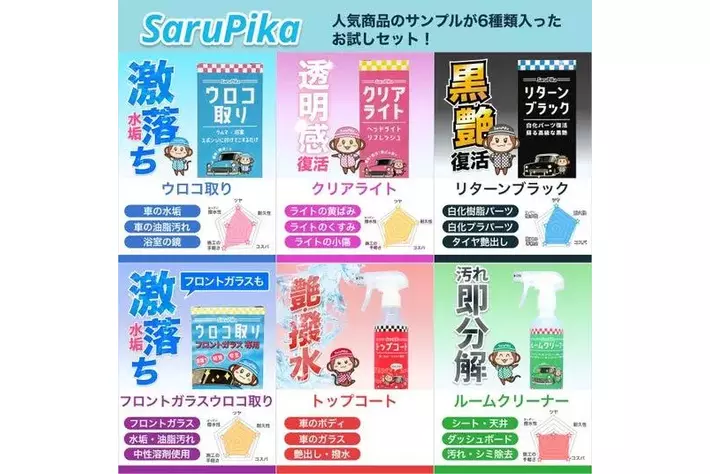 プロも納得のカーケア用品を、使いやすいサンプルサイズで厳選したアイテムも用意しております。