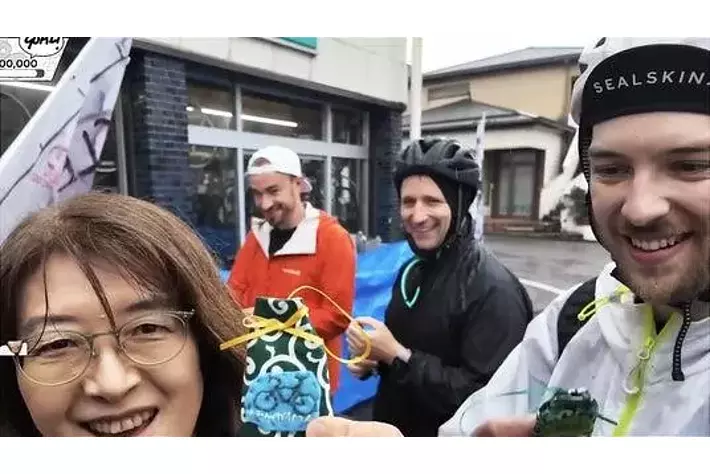 各地の立ち寄り先では、地域の人々との心温まる交流も見られました。自転車の修理のため立ち寄ったサイクルショップ(山形県酒田市)では、以前も自転車旅で訪れたことがあるゲストのRobcdee(ロブ・シーディー)が、約2年ぶりに店主と再会。突然の再来訪を喜んだ店主から、参加者全員に手作りの「自転車安全お守り」が贈られました。その様子に対し、視聴者からは「すてきなお店と店主」「やさしい!泣きそうになる」といった感動の声が寄せられました。