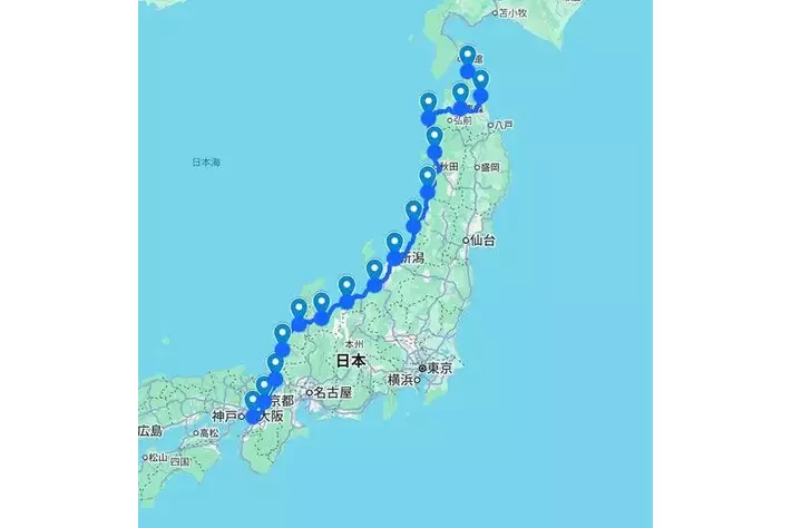 ■走行コース:青森県→秋田県→新潟県→富山県→福井県→京都府→大阪府