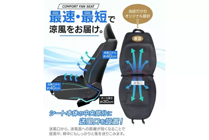 【GWのドライブを劇的に快適に!】楽天オートワールドにて、お買い物マラソンに合わせて「コンフォートファンシート」の特別セールを実施。最速・最短で涼風を届ける独自設計で、車内の蒸れを解消。