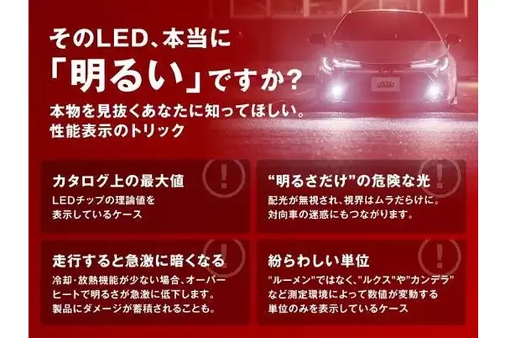 また、単なる明るさ(ルーメン値)だけを追求するのではなく、ドライバーが本当に必要とする「見やすさ」と「安全性」を両立する「信頼光」をコンセプトとしています。正確な配光設計と、購入後も安心のサポート体制を通じて、お客様に誠実な製品を提供し続けます。