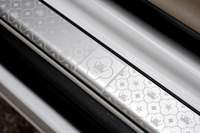 室内を美しく快適に彩り、ゲストにこの上ないやすらぎを提供する。北欧のホスピタリティという価値観はロイヤル・ウェディング公式車にも息づいている。室内の細部に施された特別な意匠。たとえば、上質なレザーを使用した革張りシートの番号付きヘッドレストには、エクステリアと同様にロイヤル・ウェディングの記章を装着。しなやかな質感と優美なデザインが、賓客に最上のリラクゼーションを約束する。ロイヤル・ウェディングの記章とそれをあしらった柄模様はロイヤル・カップルの正式な承認を受けて、特別にデザインされたもので、サイドステップカバーをはじめ車の内外装数ヶ所に用いられている。特別な日のために”謹製”された85 台のオフィシャルカーは、祝賀行事終了後、スウェーデン国内で販売される予定。