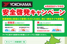 横浜ゴム(株)は、当社の国内タイヤ販売会社である(株)ヨコハマタイヤジャパンを通じて、4月8日の「タイヤの日」に全国36カ所で「ヨコハマタイヤ春の安全啓発キャンペーン」を実施する。
