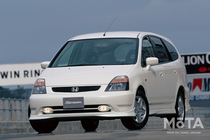 2000年に登場したホンダ 初代 ストリームは、5ナンバーに収まるコンパクトサイズで取り回しがしやすいロールーフミニバンとして登場。ホンダ オデッセイの弟分のポジションにあたり、5ドアで3列シート7人乗りのパッケージングが特徴です。販売開始から10ヶ月で10万台以上を売り上げ、2006年の販売終了までに28万5,741台を販売する大ヒットモデルとなりました。