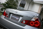 ボディサイズは、これまでのフーガよりも全長がやや長くなっている。60mmの延長はリアバンパーの形状が専用デザインになったことで、V6モデルとの差別化が行なわれた。さらにバンパー下から左右2本ずつの4本出しマフラーを採用している。