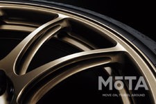 GT-R Premium edition T-specは専用の内装コーディネートを施したほか、専用となるレイズ製のブロンズ色アルミ鍛造ホイールを採用したことでばね下質量の軽量化を生かし、サスペンションも専用にセッティングした。