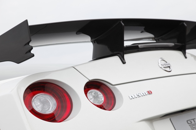 SUPER GT500のマシンと同様の意匠を用いたGT-R NISMOのリアスポイラー。