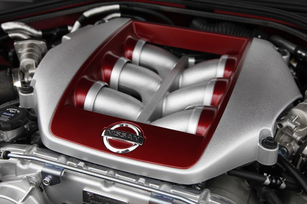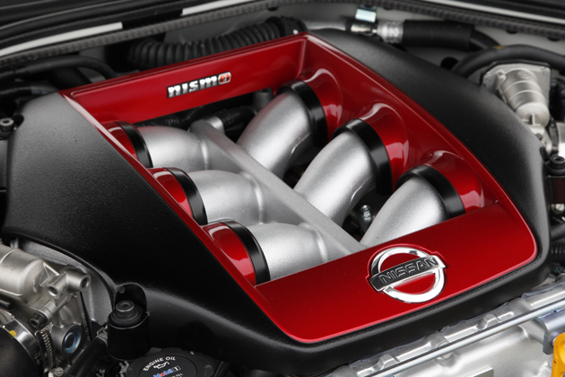 GT-R NISMO GT3モデルにも採用される高効率大容量の専用タービンを採用したほか、様々な専用設計を施されている。エンジンカバーもNISMOのロゴ入りだ。