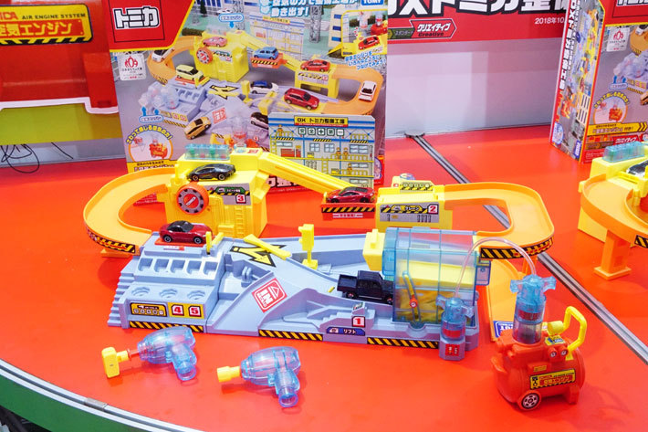 その中でも特に注目したのは「日本おもちゃ大賞2018」で【イノベイティブ・トイ部門 優秀賞】を獲得した「空気はスゴイぞ!キミが整備士 DXトミカ整備工場」(2018年10月発売予定、予価税抜き6,800円)でした。