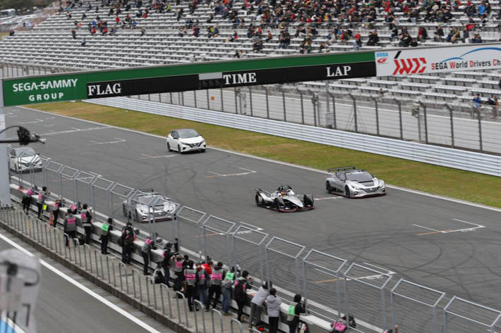 今やすっかりおなじみとなった日産応援団の声援も、非常に印象深いものがある。フォーミュラEのデモラン後に行われたドライバーと片桐社長の挨拶、さらにフィナーレなど、「ゴーゴーニッサン!」という声援とともに、何本ものフラッグが振られる。
