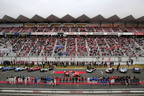 ホームストレートに出たフォーミュラEは、静かに観客の前を過ぎたかと思うと、突然大きな白煙を上げてスピンターンのサービス。その後徐々にスピードを上げながらホームストレートを往復していく。スピンターンの時もそうだが、200Km/h は優に超えるスピードで通過するときも、当然ながら豪快なエキゾーストノートは聞こえない。聞こえるのはロードノイズと、空気を切り裂く音のみというのは少々不思議な感覚である。