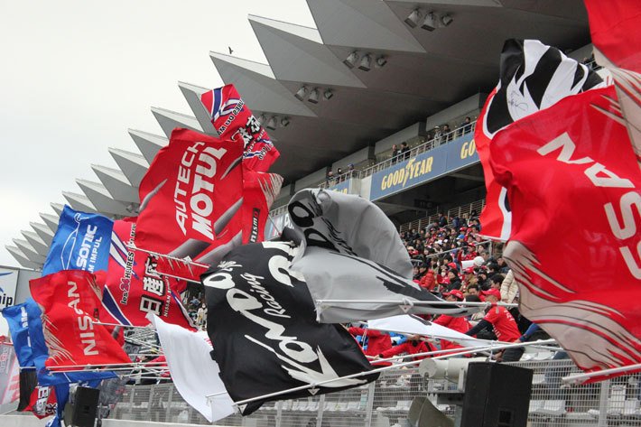 最後に、NISMOの片桐社長から2018年1年間の感謝と来年への抱負が語られると、すぐそばのスタンドにいた日産応援団から「ゴーゴーニッサン!」のコールが始まり、その声はフィナーレ終了後にも続いていた。