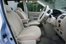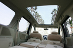 ラフェスタは昭和57年にデビューした初代モデル以来、両側スライドドアを特徴とするプレーリー~リバティの系譜を受け継ぐ小型ミニバン。インテリアから発想して乗る人すべてが快適に過ごせるクルマを目指して開発された。快適性を確保するためのポイントのひとつが明るい室内。これはベルトラインを低く抑えて大きなガラス面積を持つウインドーを採用したほか、パノラミックルーフと呼ぶ1500㎜×800㎜という超大型のガラスルーフを採用したことによって作られた。