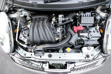 新しく搭載されたHR15DE型エンジンのパワー&トルクは80kW/148N・mの実力で、従来からのCR14DE型に比べ9kW/12N・mも向上しており、ボディに対して十分な余裕を持つエンジンである。マーチの車両重量はこの1.5L車でも1000kgを切る程度だから、十分すぎる実力といっても良いだろう。
