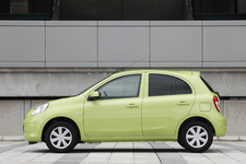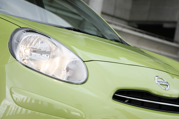 キョロリとした顔つきが愛らしかった3代目から、お兄さん顔へと成長した4代目マーチ。ワイドに見えるスタンス、彫りが深い顔立ちは、全体としてちょっぴりたくましく変化した。よく見ればサイドのドアの形状や丸みを帯びたヘッドライトは、3代目のモチーフが踏襲されているようだ。