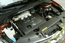 何とも個性的なそのエクステリア・デザインから俄かには想像をしにくいが、ハードウェア上の骨格となったのはティアナやプレサージュ、そしてやはり北米向けのマキシマやアルティマなども採用する日産が“FF-L”と呼ぶ大型のFF車用プラットフォーム。すなわち、搭載するV6エンジンとトランスミッション(CVT)はいわゆる横置きレイアウト。ここからも、ムラーノはあくまでも“乗用車ベース”である事が伺える。