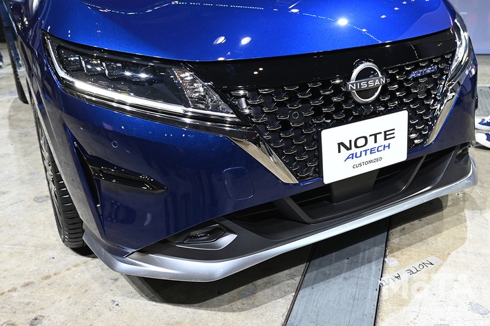 日産 ノート AUTECH CUSTOMIZED、20ミリのローダウンなどでワイド&ローなスタイルを強調【東京オートサロン2022】