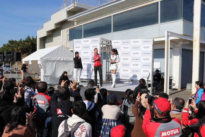 今回のオーテック里帰りミーティングでは、毎回お馴染みの過走大賞(過走行のオーテック車に授与される賞)や遠来賞東北方面、遠来賞西南方面の表彰が行われたほか、NISMOアンバサダー兼NISMOドライビングアカデミー校長でもあるミハエル・クルム氏によるトークショーを開催。トークショーでは正しいドライビングポジションの取り方や運転のコツなど、すぐにでも実践できるレクチャーがなされた。