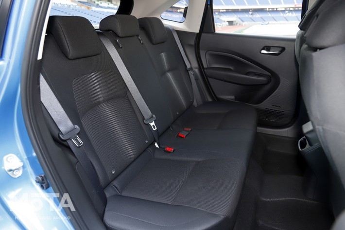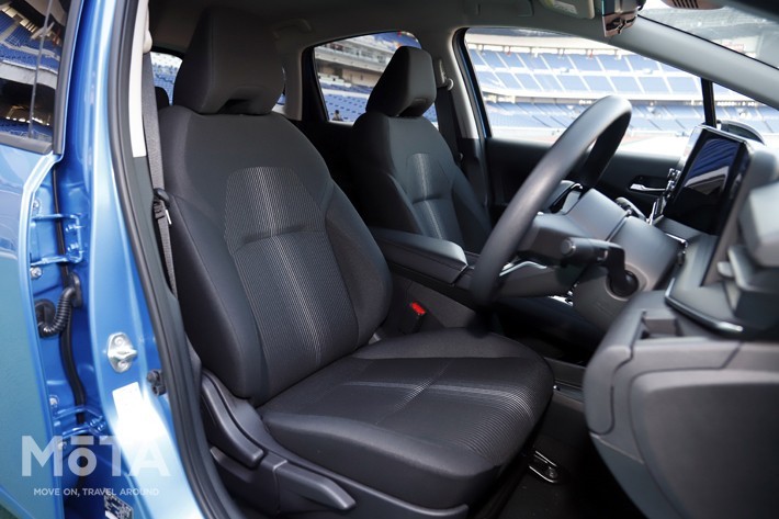 前席のボリューム感のある座り心地。また、後席では乗員の膝先空間に握りコブシ2つ分を確保している。