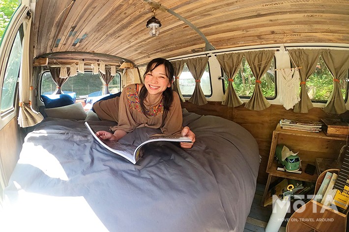 ワーゲンバスでは、キャンプ場のグランピングエリアで宿泊しました。