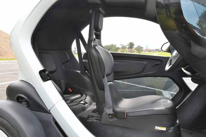 足の間に前席のシートが来るので、体勢的には2輪のように“跨がる”感じ。乗り降りには苦労しますが、収まってしまえば自分専用の個室にすっぽり入っているような安心感があります。