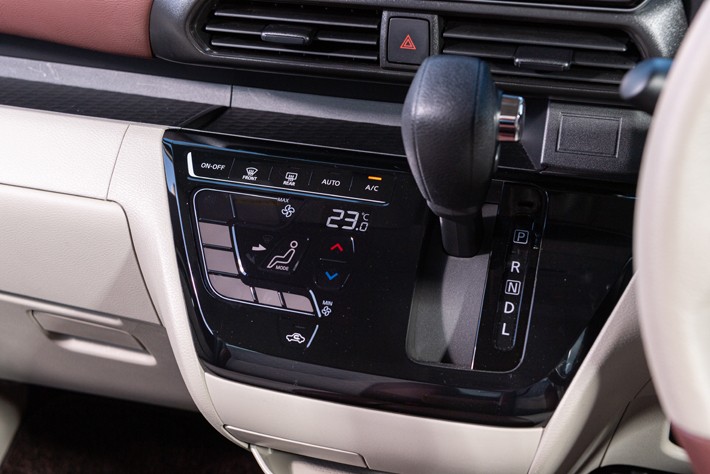 また、本革ステアリングホイールも同様のカラーリングとしたほか、メッキボタン付シフトノブやメッキインナードアハンドルもプラスされることで、ワンランク上の室内空間を実現しているのだ。