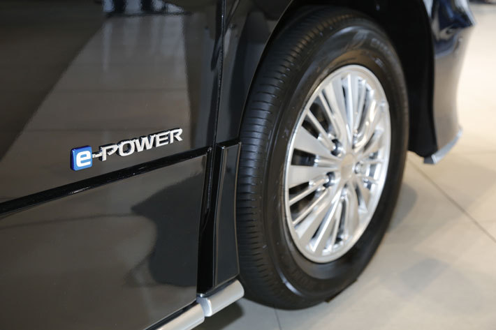 外観上は、e-POWER専用のブルーアクセントが各所に加わるほか、専用外装パーツも装着される。さらに空気抵抗にも配慮したe-POWER専用の15インチエアロアルミホイールも全車につく。
