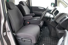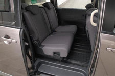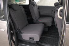 シート配列は前から2-3-3名のベーシックなもの。もっとも凝っているのはセカンドシートだ。セカンドシートにはエルグランドと同様の、セカンドマルチセンターシートを採用。セカンドシート部分に配置し、展開すればセカンドシートをベンチシートとして使えるほか、折りたたんでセカンドシートのテーブルとして使える。また、前方にスライドさせれば、フロントシートのテーブルとしての機能も持つ。
