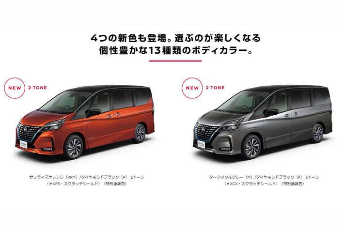 2019年8月1日、日産は人気ミニバン「セレナ」のマイナーチェンジモデルを発表した。迫力を増したフロントマスクを新採用するなどデザインを一新するとともに、先進安全技術の「全方位運転支援システム」を全車に標準装備した。