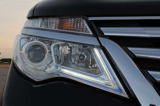 白色光がキリリと光るLEDヘッドランプはメーカーオプション。