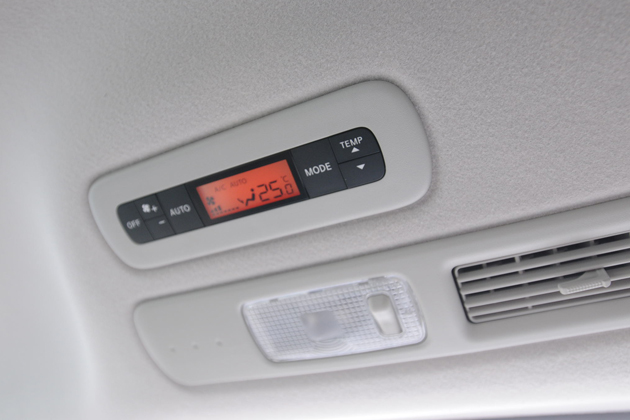 エアコンは前席と後席で個別に設定・自動制御可能なオートデュアルエアコンを装備する。[※試乗撮影車はメーカーオプションの「プレミアムハイコントラストインテリア」スエード調トリコット・カブロン内装(内装色:フェザーグレー/プレミアムパール・フィニッシャー)]