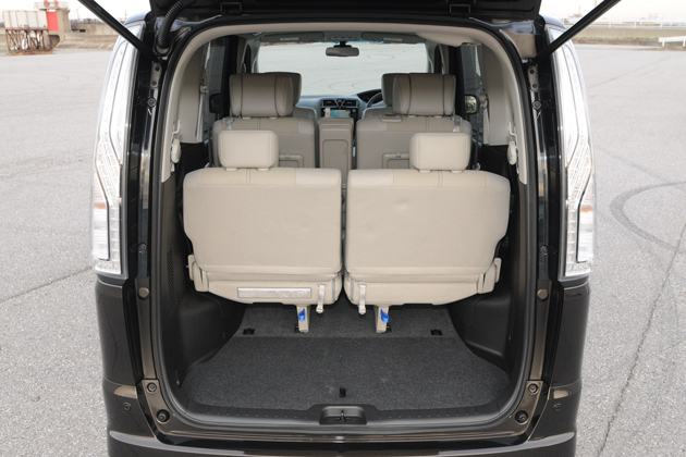 8名定員乗車時の荷室[※試乗撮影車はメーカーオプションの「プレミアムハイコントラストインテリア」スエード調トリコット・カブロン内装(内装色:フェザーグレー/プレミアムパール・フィニッシャー)]