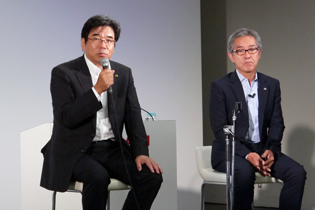 日産自動車 副社長 坂本秀行氏(左)、日産自動車 理事総合研究所長 アライアンス グローバル ダイレクター 土井三浩氏