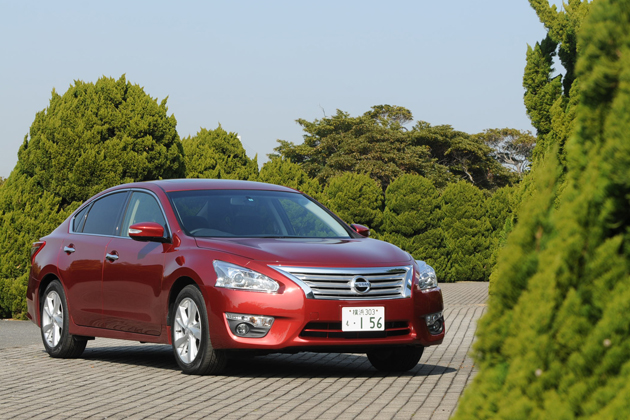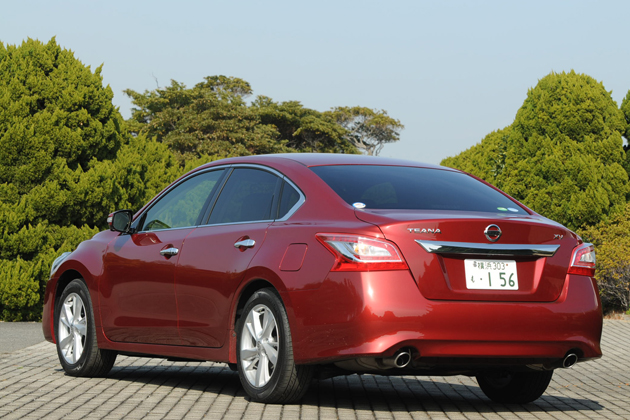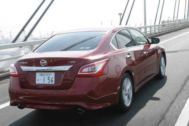 抑揚のある造形で魅力を増した新型ティアナ。いっぽうでこの角度からはキャビン空間の広さが良く分かる。